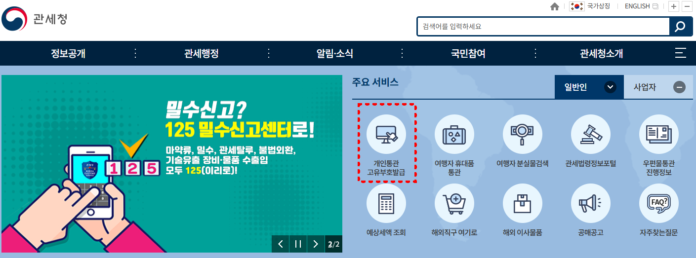 • 또는 관세청 개인통관고유부호 발급 홈페이지 접속