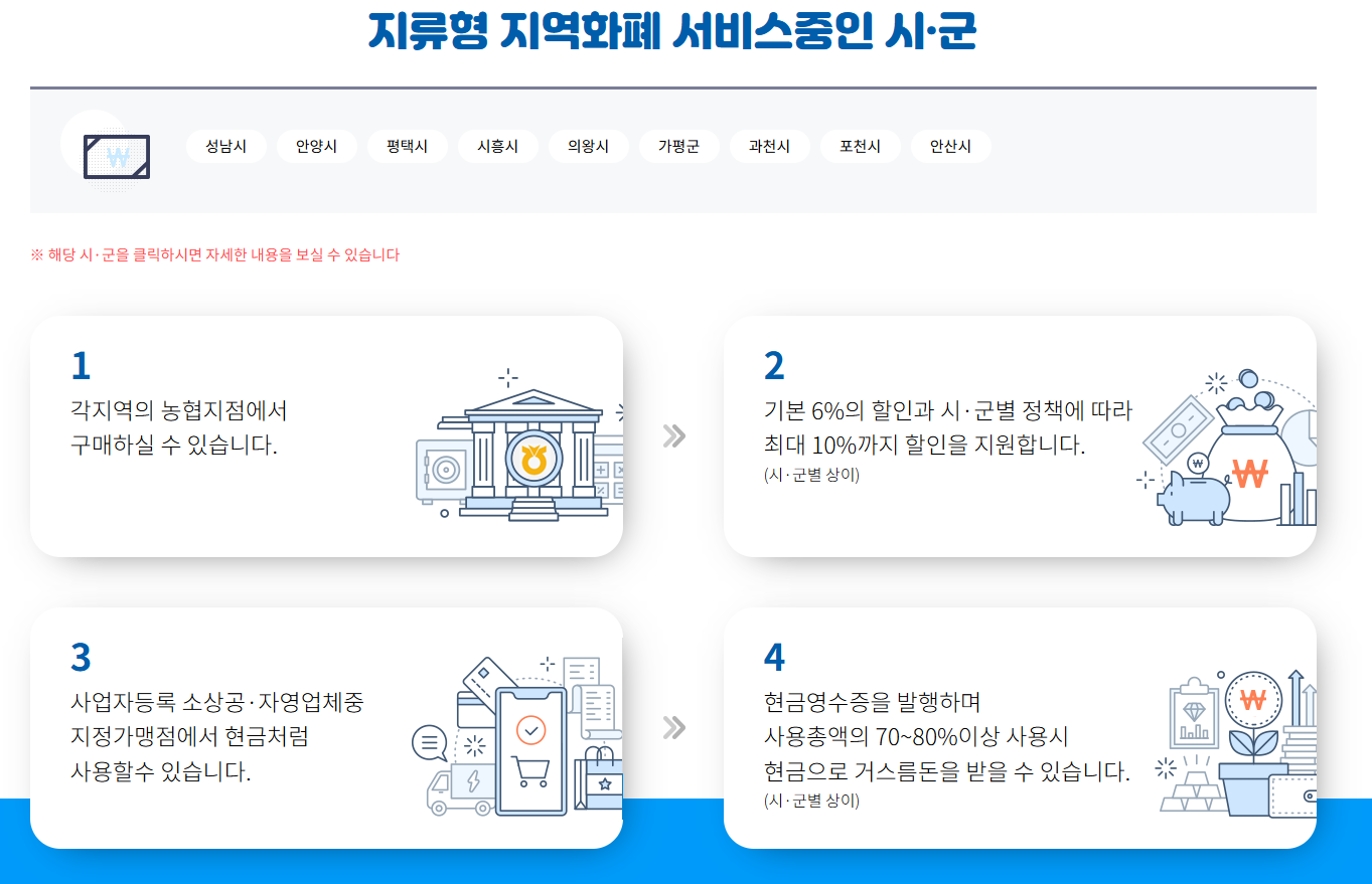 다음 시·군에서는 지류형 지역화폐도 운영 중이에요 해당하는 지역에서 사용 확인처를 확인해보세요.