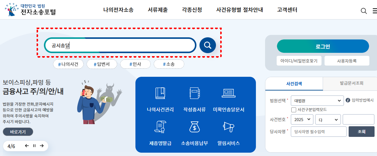 요즘은 전자소송 사이트에서 공시송달 신청이 가능해요. 절차는 아래와 같아요.