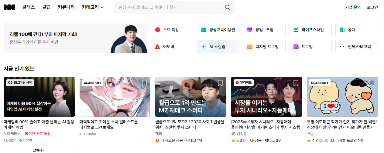 취미부터 직무까지, 라이프스타일 교육의 선두 주자 클래스101(Class101)이에요!