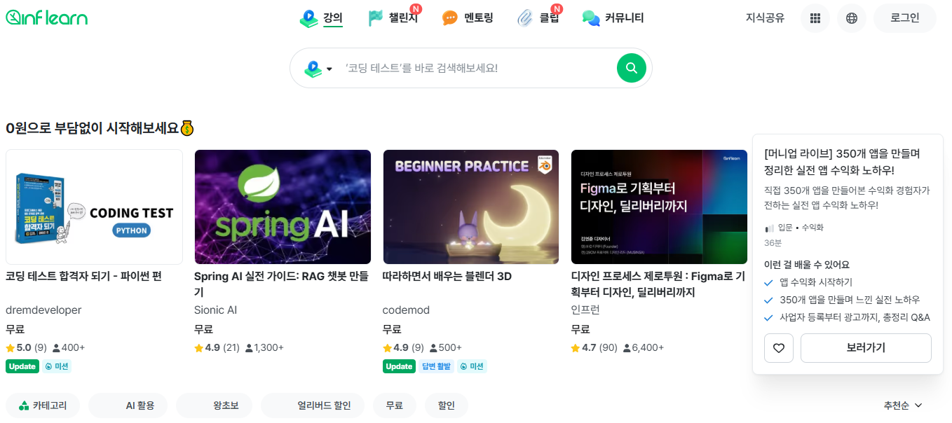 실무 개발 강의의 성지, 인프런(Inflearn)의 매력이에요!