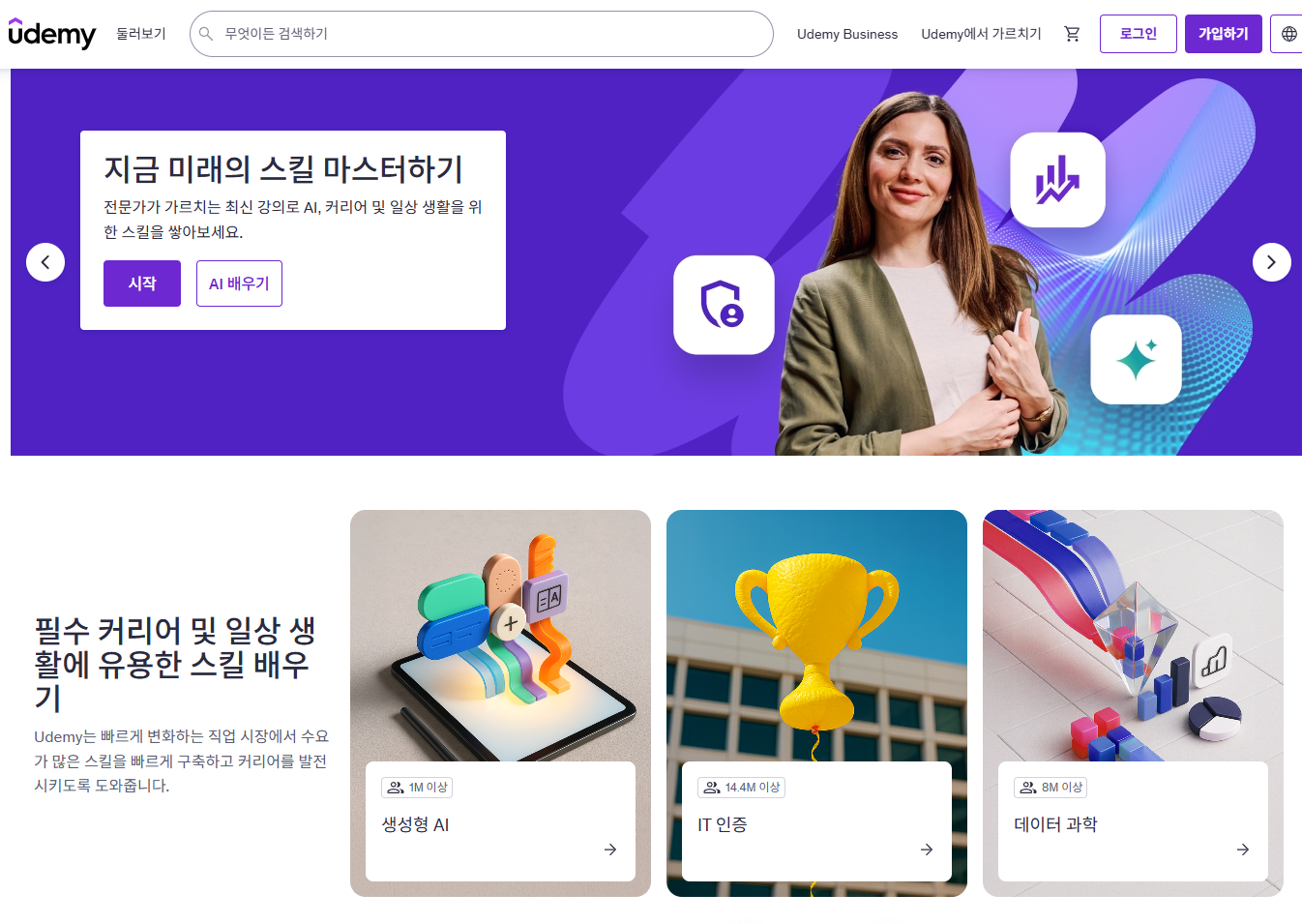 유데미는 전 세계 수많은 강사와 학습자를 연결하는 글로벌 온라인 교육 플랫폼이에요. 웅진씽크빅이 한국 독점 사업을 담당하면서 국내에서도 인지도를 높이고 있어요. 코딩, IT, 비즈니스, 디자인, 취미 등 압도적으로 다양한 콘텐츠를 보유하고 있으며, 특히 해외 전문가의 강의를 접하고 싶은 학습자들에게 큰 장점이에요. 할인 이벤트를 자주 진행하여 비교적 저렴한 가격에 강의를 구매할 수 있는 기회가 많아요!