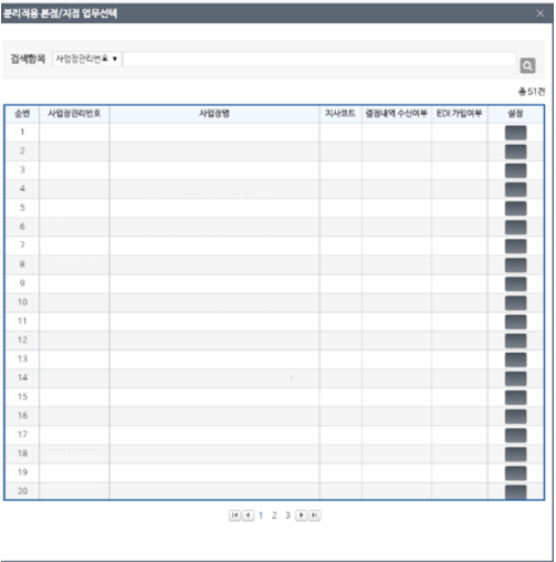 - 지점 선택: 분리적용 지점사업장을 선택 후 이동