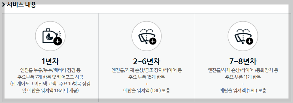 기아의 명품 차량 관리! 8년간 8번의 기아멤버스 기본점검으로 완벽한 품질의 차량관리를 제공받으실 수 있습니다.