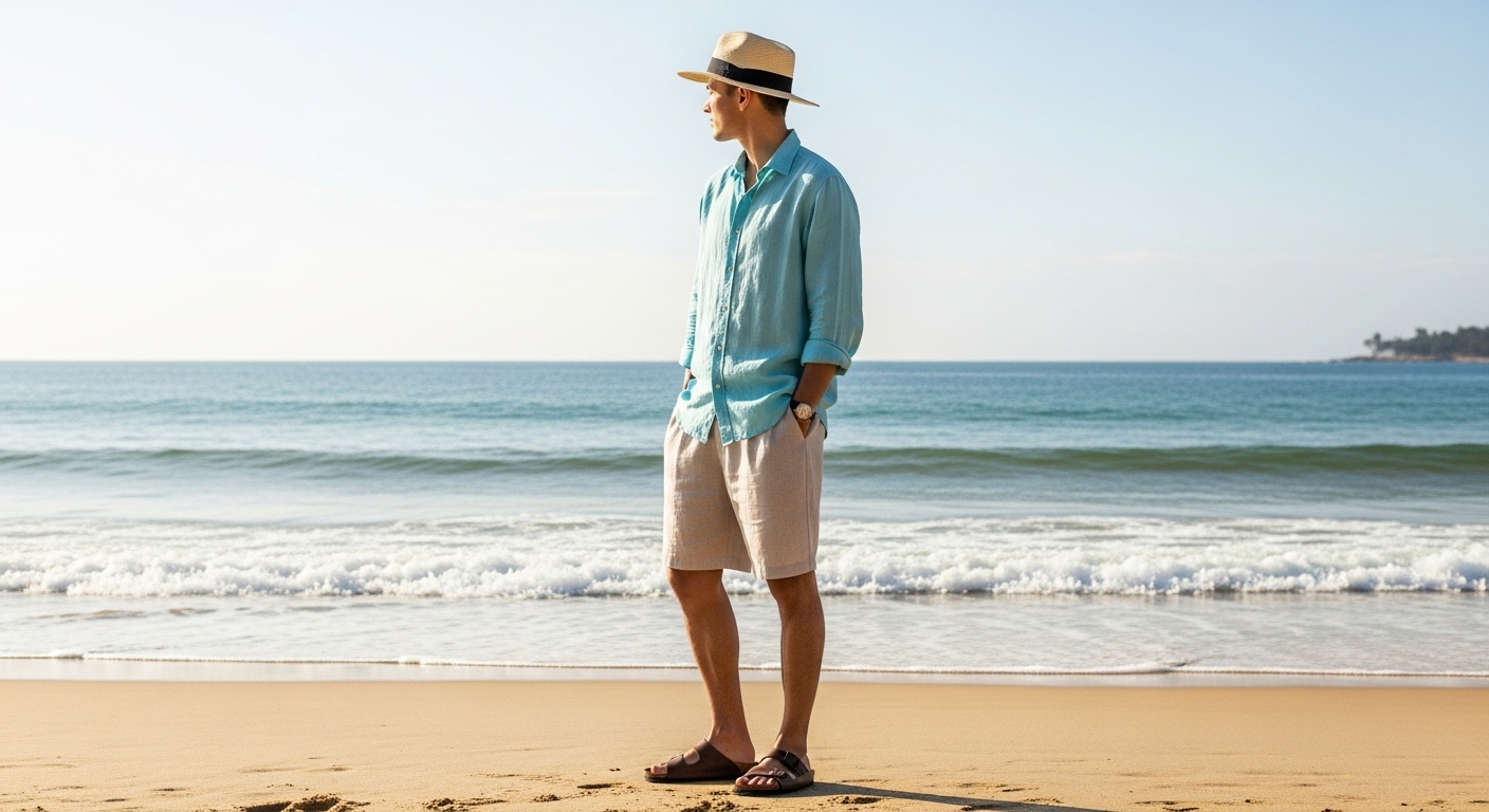 한여름의 더위에는 통풍이 잘되는 민소매, 슬리브리스, 린넨 셔츠 등이 좋아요. 몸의 열을 밖으로 빼내기 위해선 통기성 좋은 면, 린넨, 기능성 쿨 원단을 고르는 게 좋아요. 신발도 샌들이나 슬리퍼처럼 시원한 제품이 좋아요.