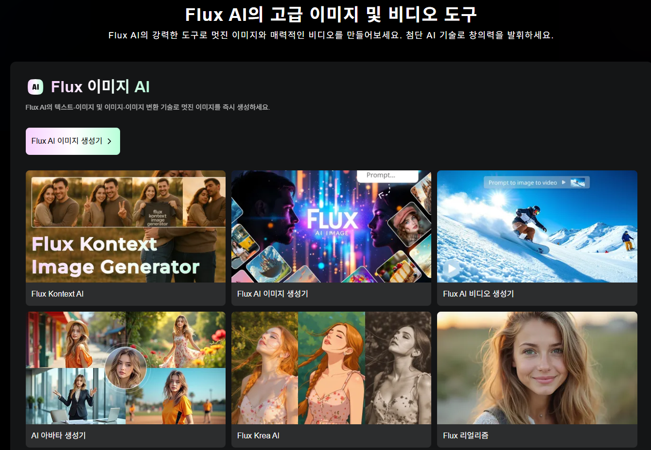 - Flux AI는 다양한 AI 이미지 생성 및 편집 모델을 제공하는 온라인 서비스입니다.