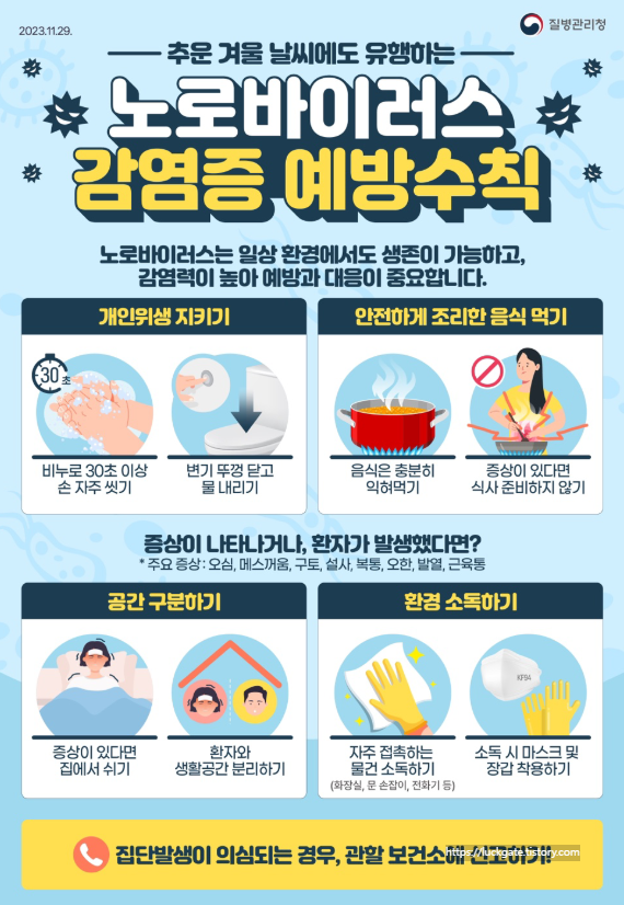 노로바이러스 감염증은 높은 감염력과 환경 내 생존 능력으로 인해 빠르게 확산될 수 있는 질병입니다. 특히 영유아를 중심으로 감염이 급증하고 있어, 관련 시설과 가정에서의 철저한 위생 관리가 요구됩니다. 올바른 손씻기와 안전한 음식 섭취, 철저한 환경 소독을 통해 노로바이러스 감염을 효과적으로 예방할 수 있습니다. 우리 모두가 작은 노력으로 건강한 겨울을 보낼 수 있도록 주의합시다.