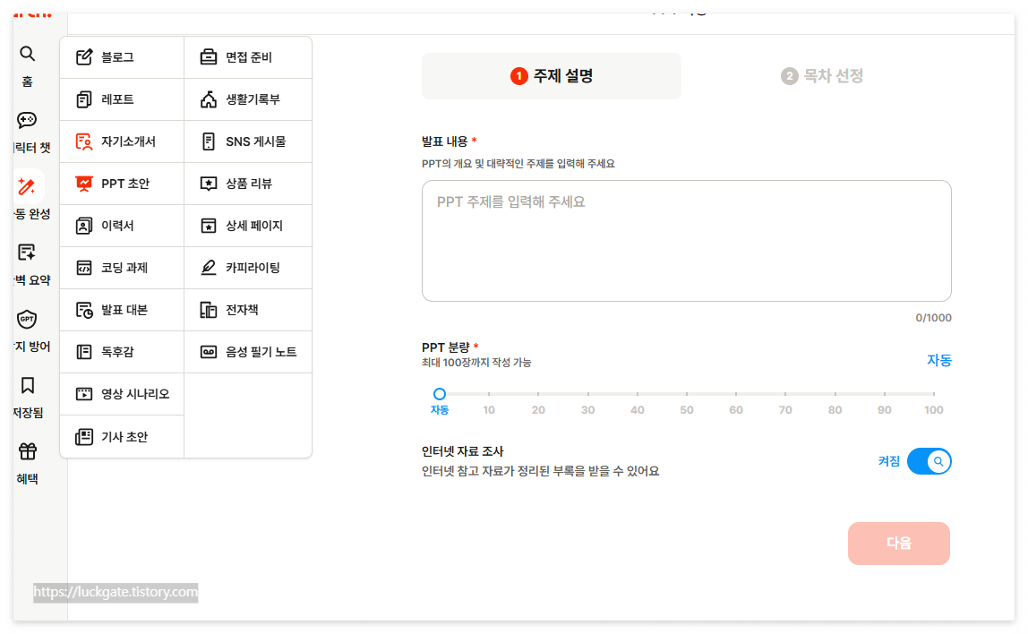 - 키워드나 주제를 입력하면 AI가 자동으로 콘텐츠를 생성합니다.