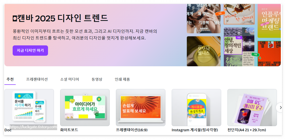 - Canva 계정을 생성한 후, 원하는 템플릿을 선택하여 디자인을 시작합니다.
