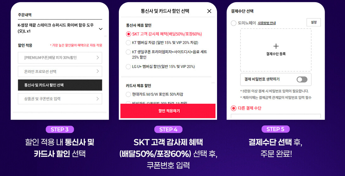 - SKT 고객 감사제: 배달 50%·포장 60% 할인