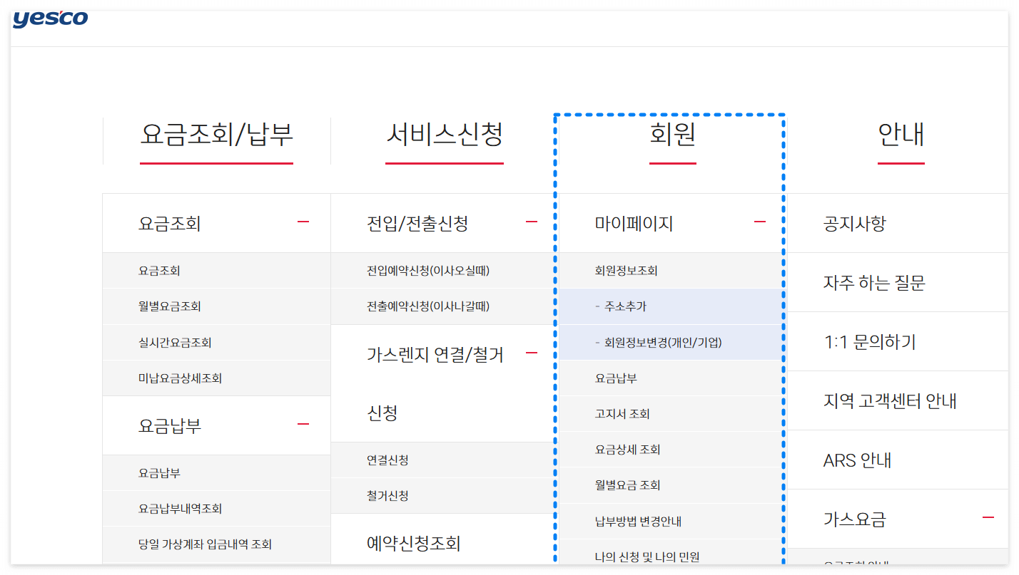 • 홈페이지 로그인 후 [마이페이지]에서 요금 조회/납부, 과거 사용량 패턴 확인 등을 하실 수 있습니다.