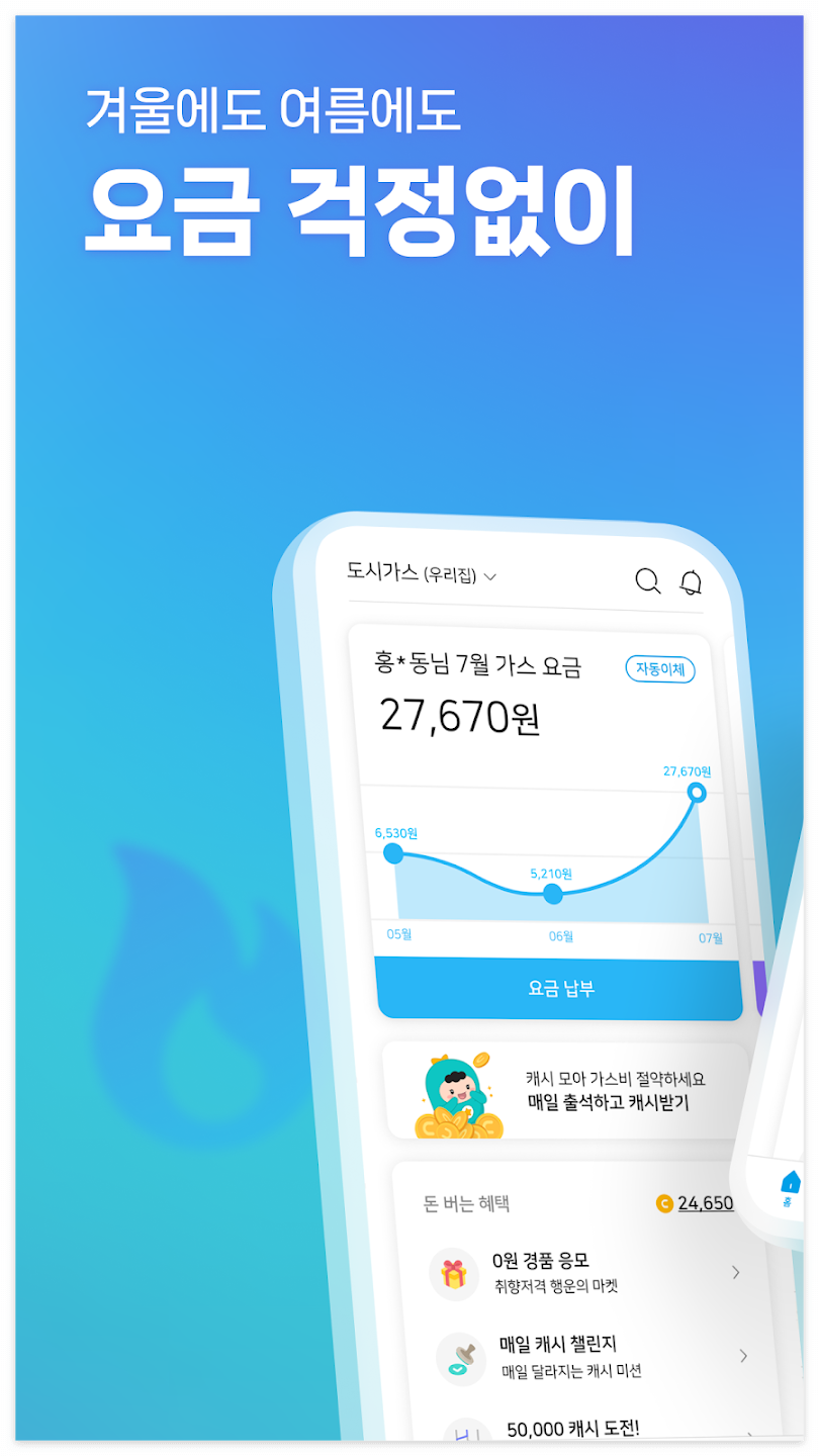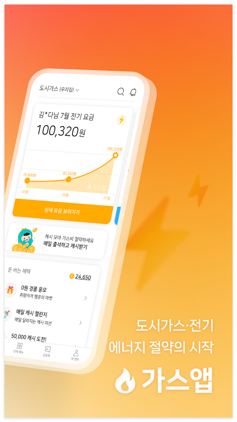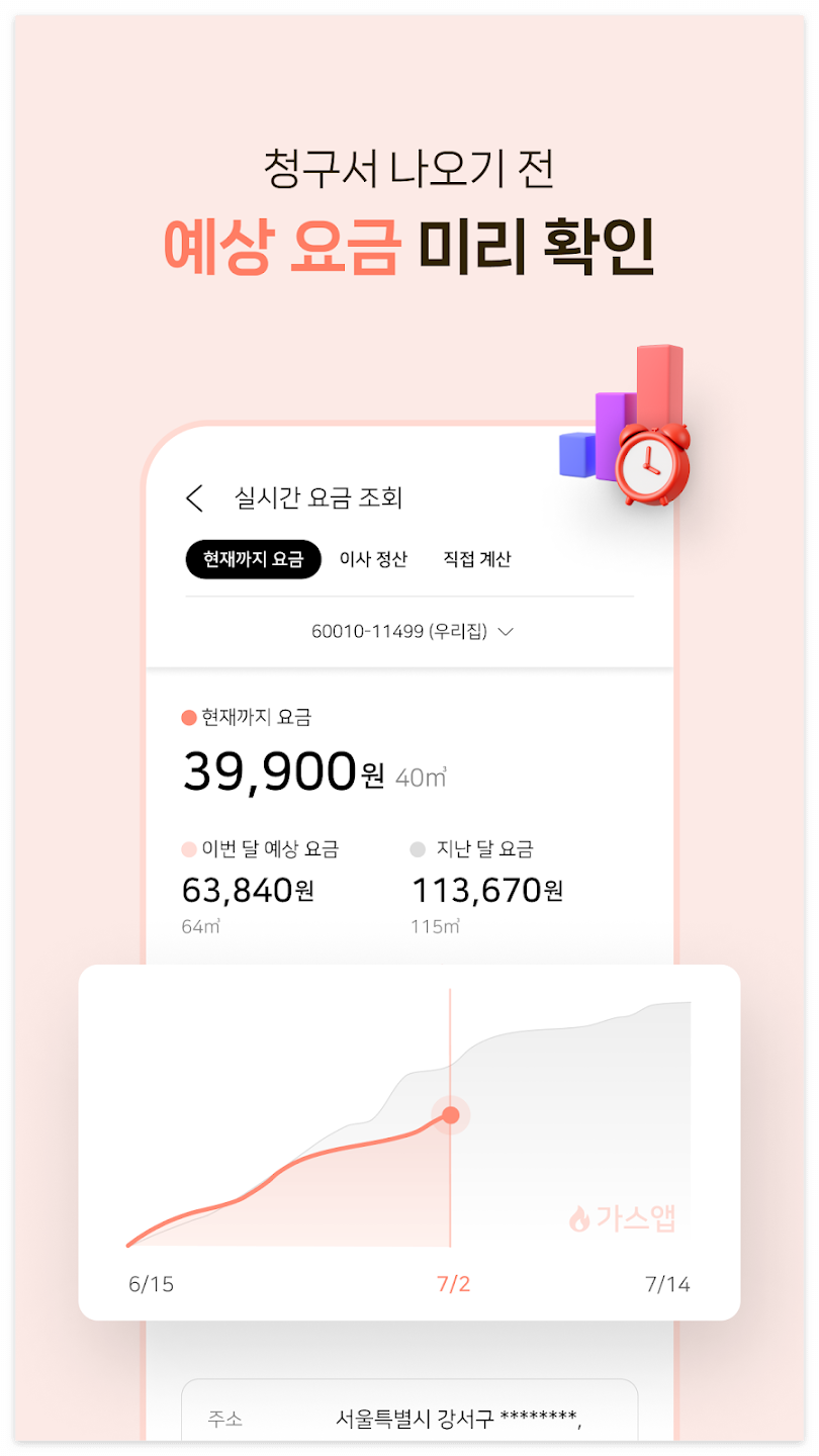 가스앱은 실시간 요금조회의 혁신을 가져온 서비스입니다. 이제는 집에서 고지서가 오기만을 기다릴 필요 없이, 스마트폰으로 언제 어디서나 실시간 요금 확인이 가능해졌습니다.