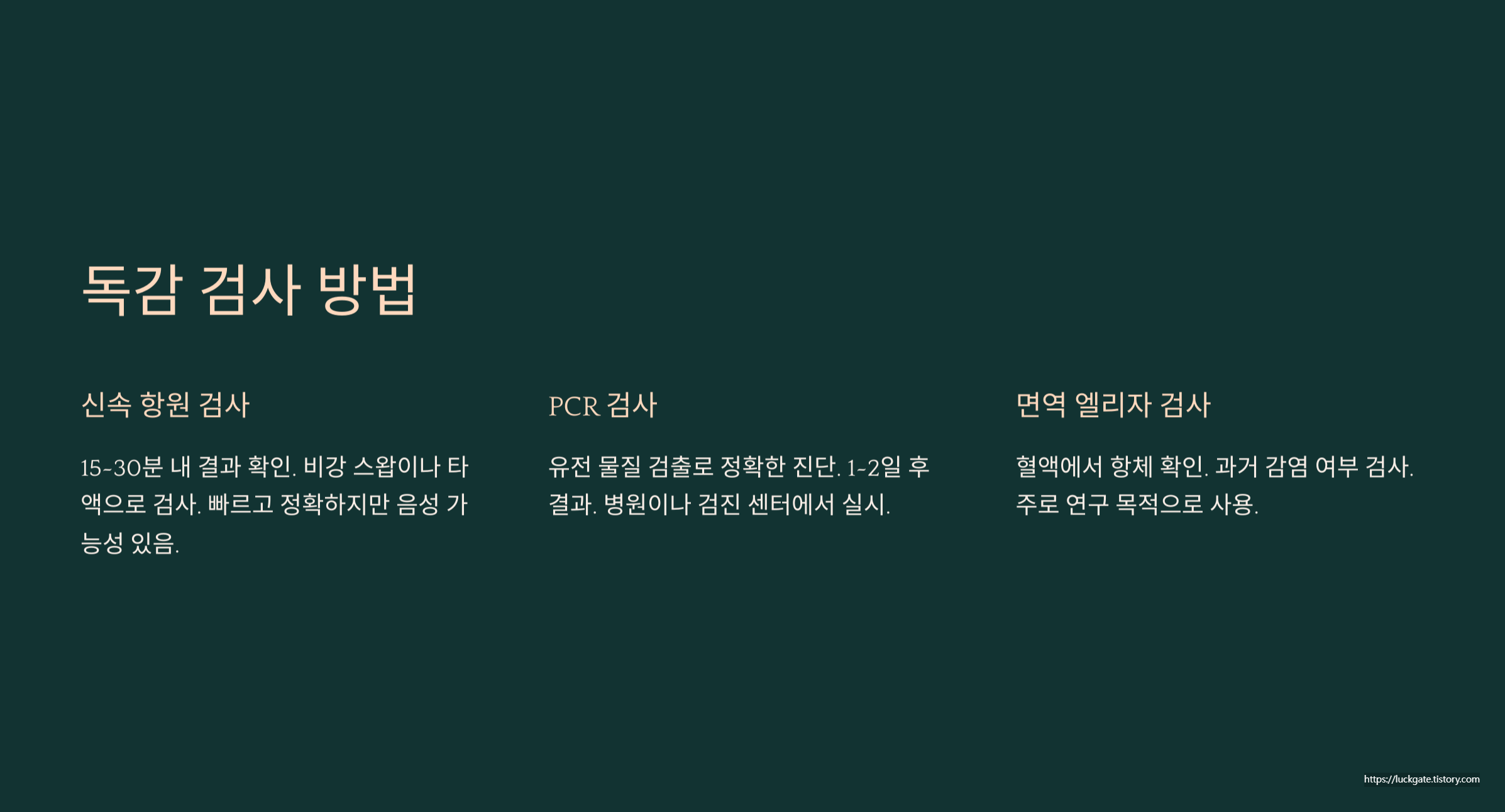 - 상대적으로 높은 정확도와 빠른 결과로 인해 많이 사용됩니다. 하지만 일부 경우에는 음성 결과가 나올 수 있으므로, 감염이 의심될 경우 후속 검사를 고려해야 합니다.