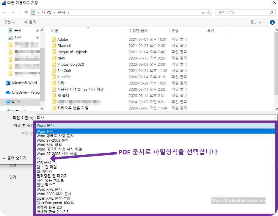 3. MicrosoftWord를 이용한 PDF 변환방법