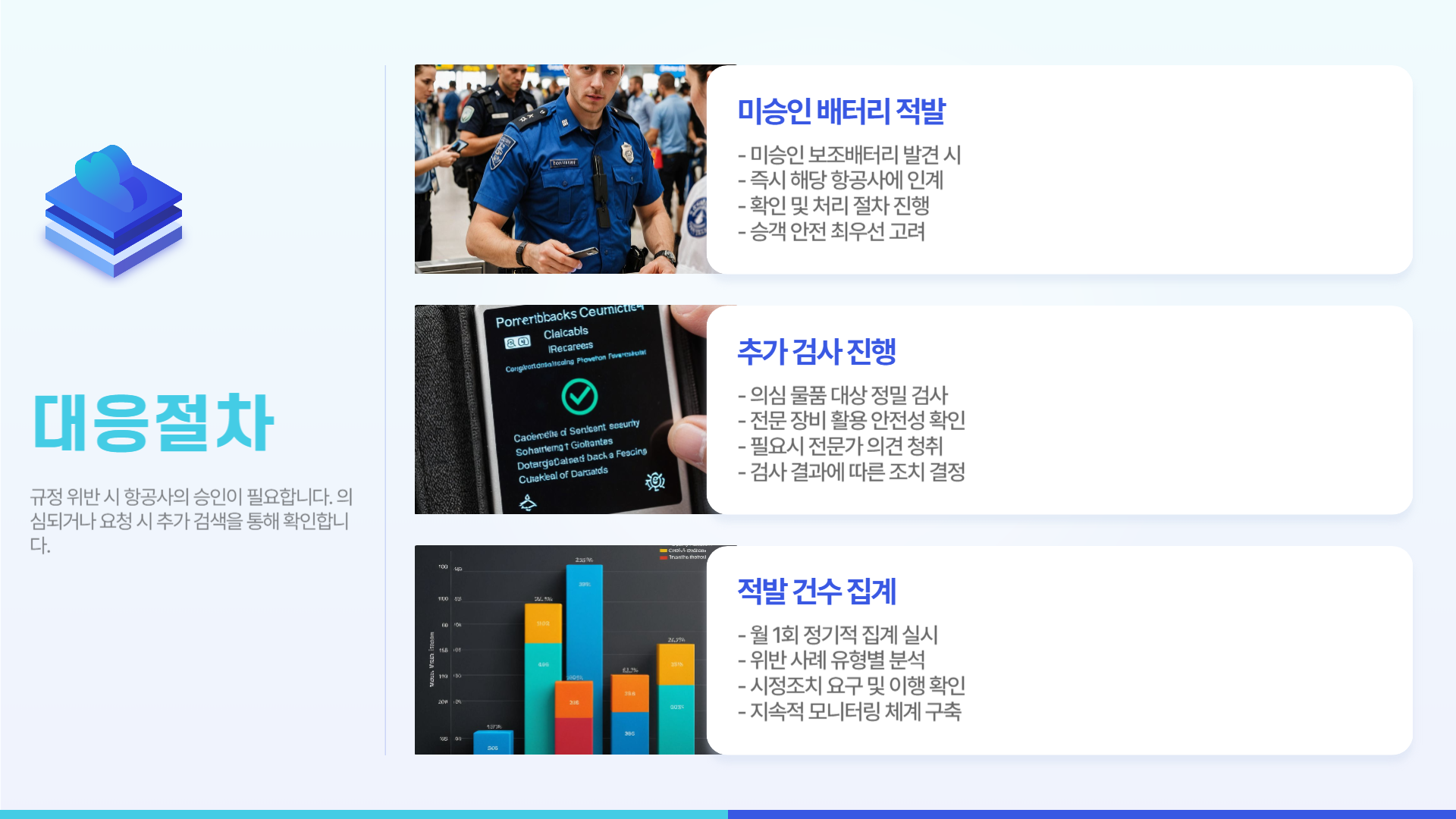 - 미승인 보조배터리 적발 시 항공사 즉시 인계