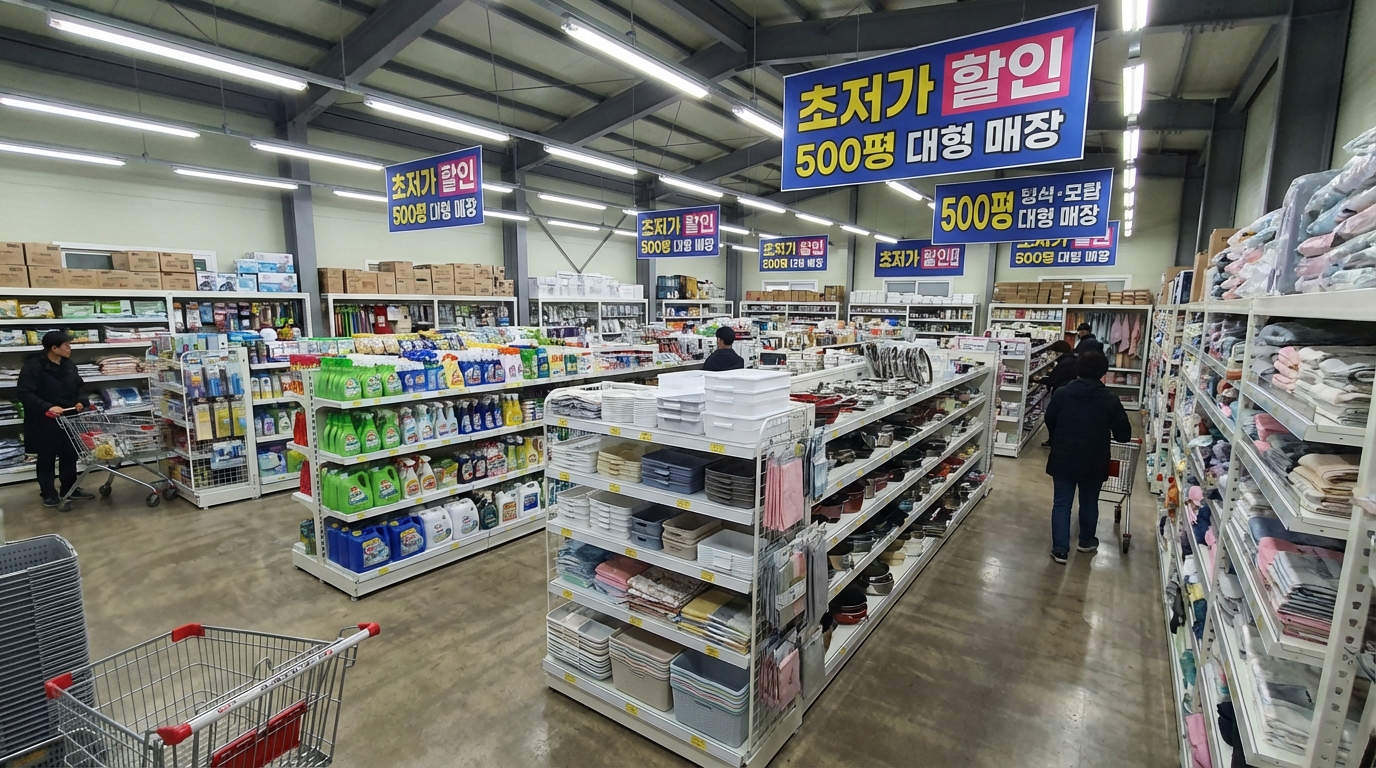 - 매장 특징: 500평 규모 초대형 잡화 매장, 도소매 할인점, 창고형 할인 매장