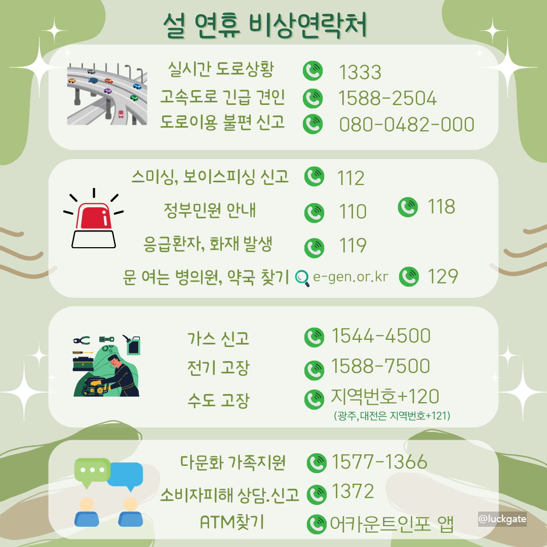 설 연휴 비상연락처 총정리 ,교통 관련 긴급연락처, 의료·안전 관련 비상연락처