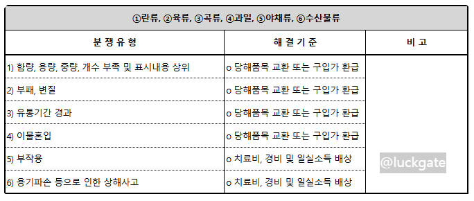 - 품목별 피해보상 기준 제시