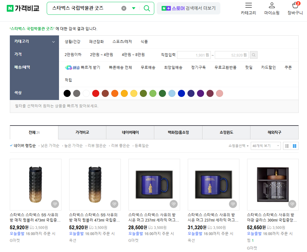 쿠팡에서도 스타벅스 국립박물관 굿즈를 판매하고 있는데요. 일반배송이라 새벽배송,로켓배송은 어려운 상품이 많아요