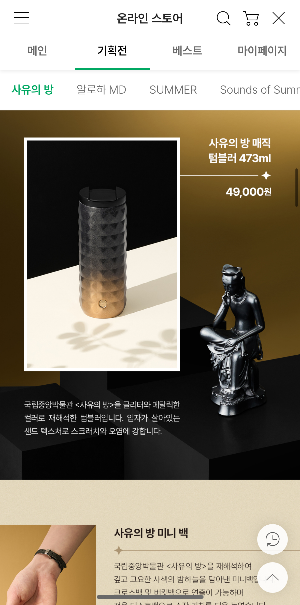 2025년 스타벅스와 국립중앙박물관의 협업으로 탄생한 ‘사유의 방’ 굿즈는 소장 욕구를 자극하는 아름다움과 상징성을 담고 있어요.