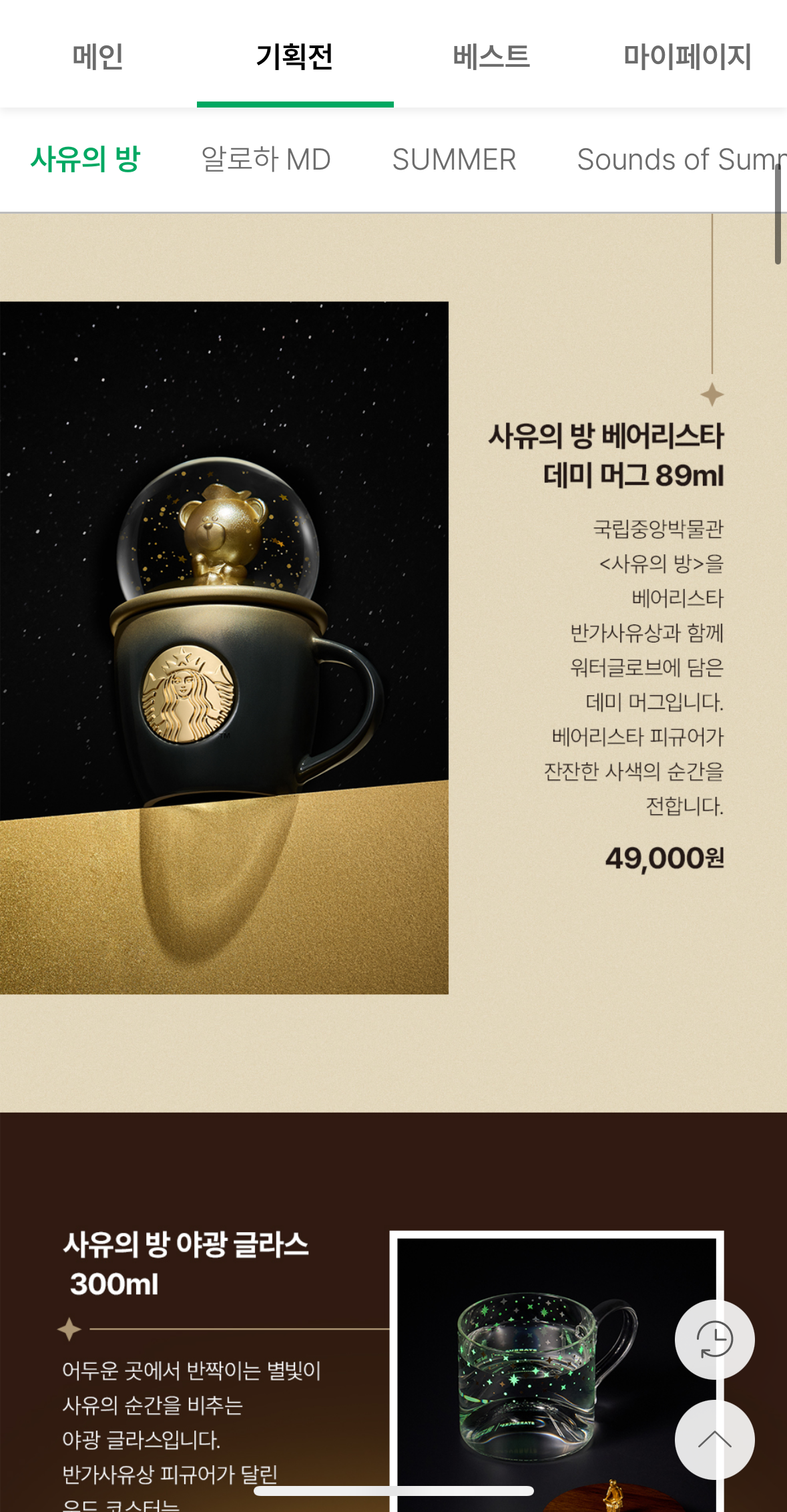 스타벅스 앱 접속 → 장바구니모양 ‘쇼핑’ 클릭 → ‘사유의 시간’ 선택 후 바로 구매 가능해요.