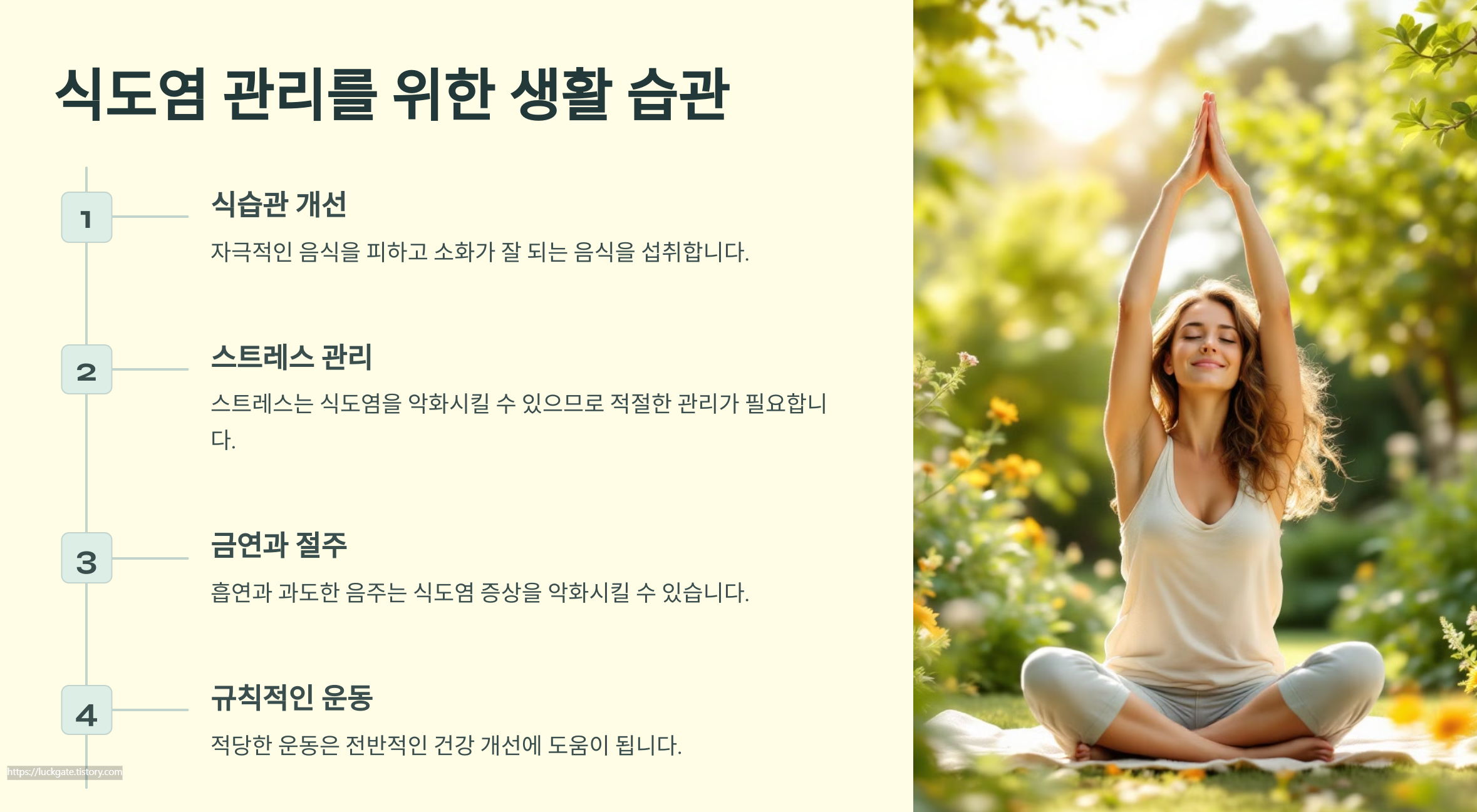 식도염은 다양한 원인에 의해 발생하며, 증상과 식이요법에 따라 관리할 수 있는 질병입니다. 위염과의 차이점을 이해하고, 적절한 음식을 선택하여 증상을 완화할 수 있습니다. 만약 지속적인 증상이 발생한다면 전문의의 상담을 받는 것이 좋습니다.