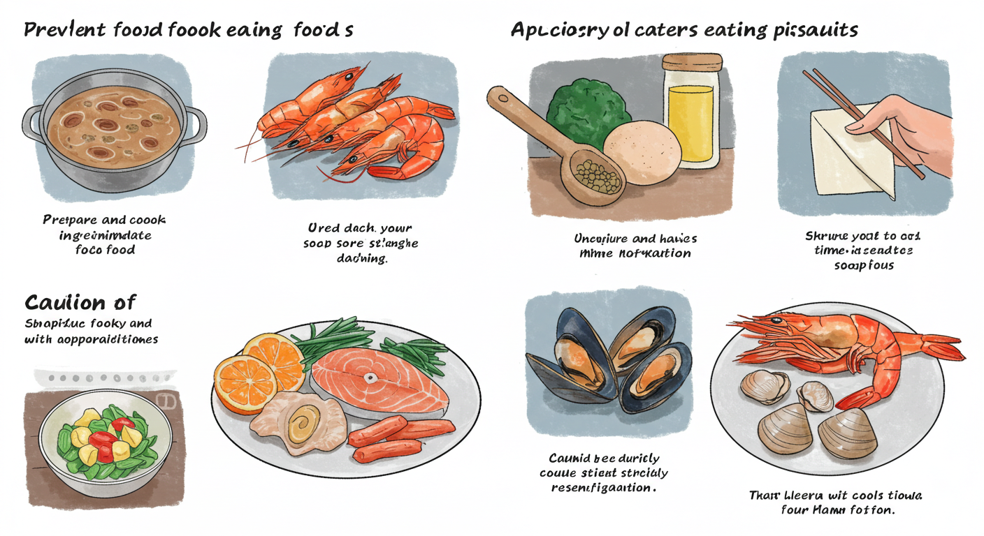 - 생식 주의: 조개류나 생선 같은 해산물, 계란 등은 완전히 익혀서 섭취하는 것이 안전해요.