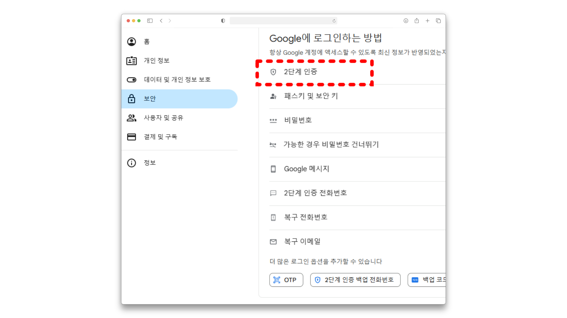 계정 탈취를 막는 가장 효과적인 방법은 2단계 인증입니다. 로그인할 때 비밀번호 외에 추가로 인증을 거치게 되므로 보안이 한층 강화됩니다.