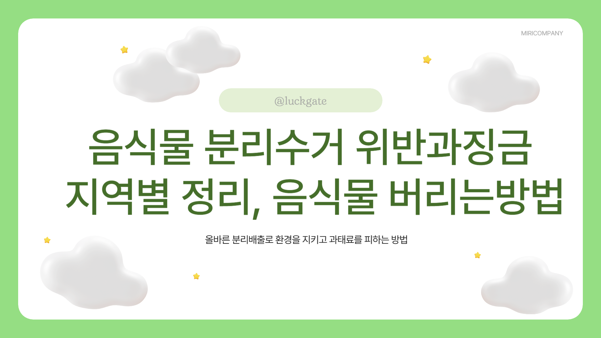 음식물 분리수거의 중요성 우리나라는 매년 약 500만 톤의 음식물 쓰레기가 발생하고 있어요. 이는 연간 약 20조 원에 달하는 경제적 손실을 초래하고 있죠. 음식물 쓰레기의 올바른 분리수거는 단순히 규제를 지키는 차원을 넘어, 우리의 환경과 미래를 지키는 중요한 실천이라고 할 수 있습니다.