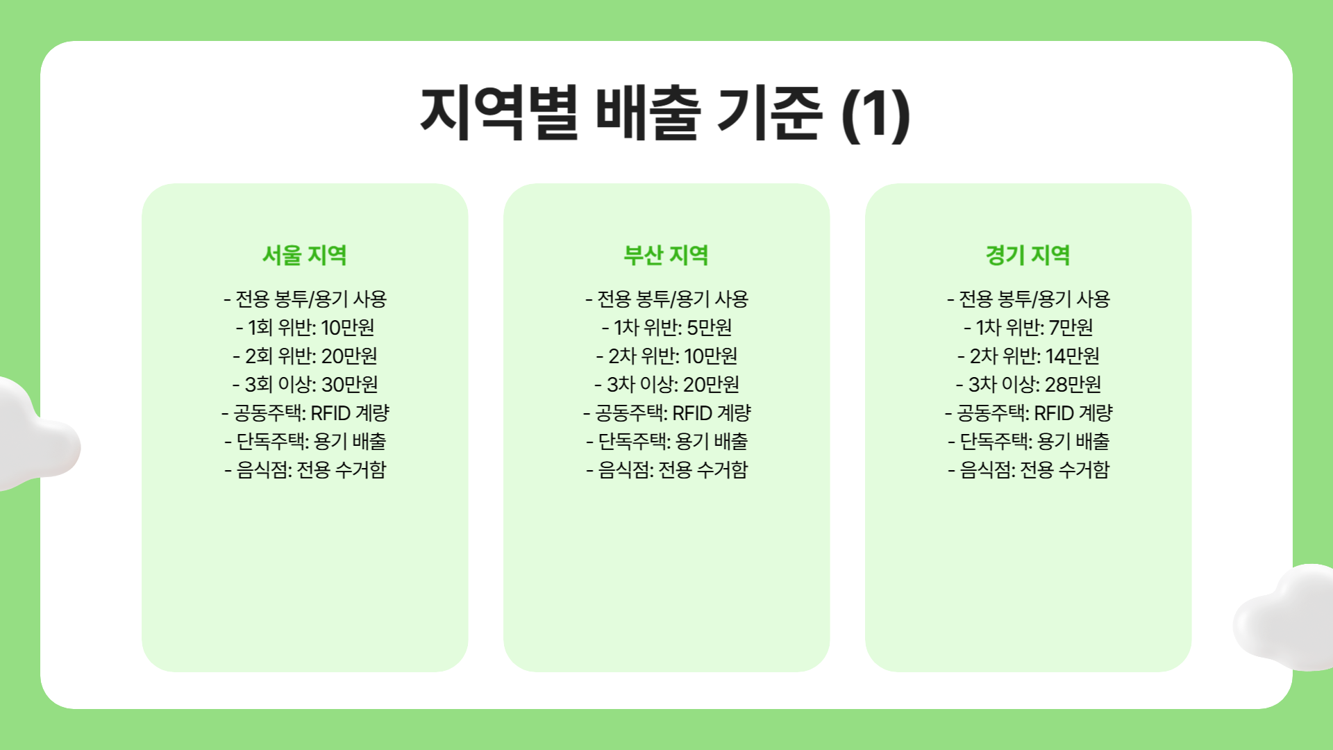 지역별 음식물 분리수거 위반과징금 부과 기준