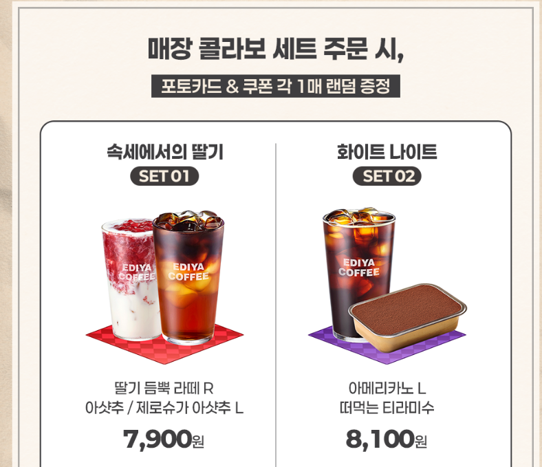 매장에서 콜라보 세트를 주문하면 음료와 디저트, 그리고 굿즈가 함께 제공돼요.