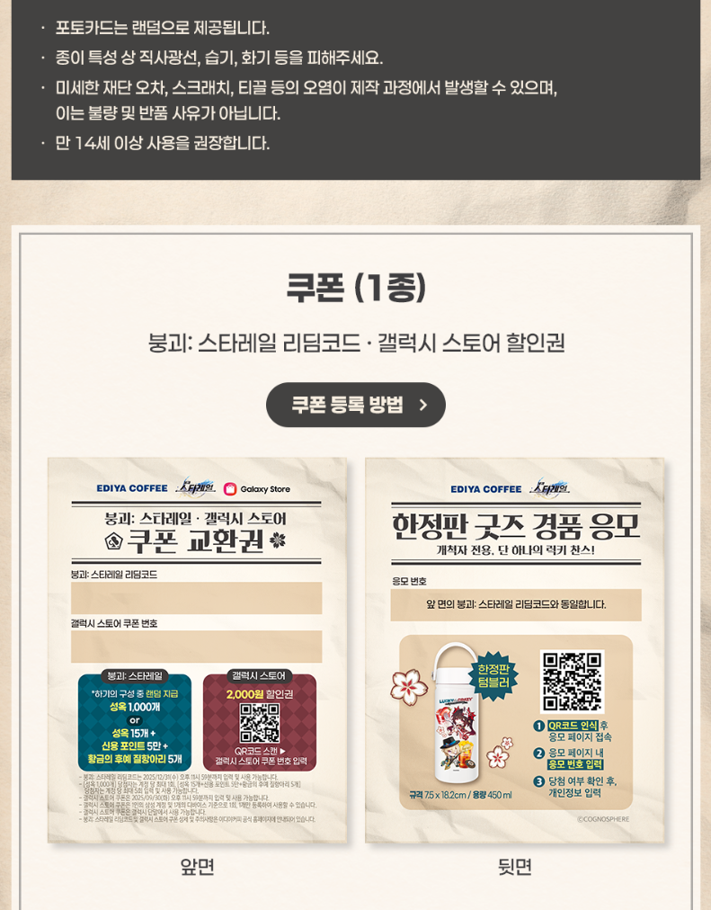 - 쿠폰 교환권 : 스타레일 리딤코드, 갤럭시 스토어 할인권