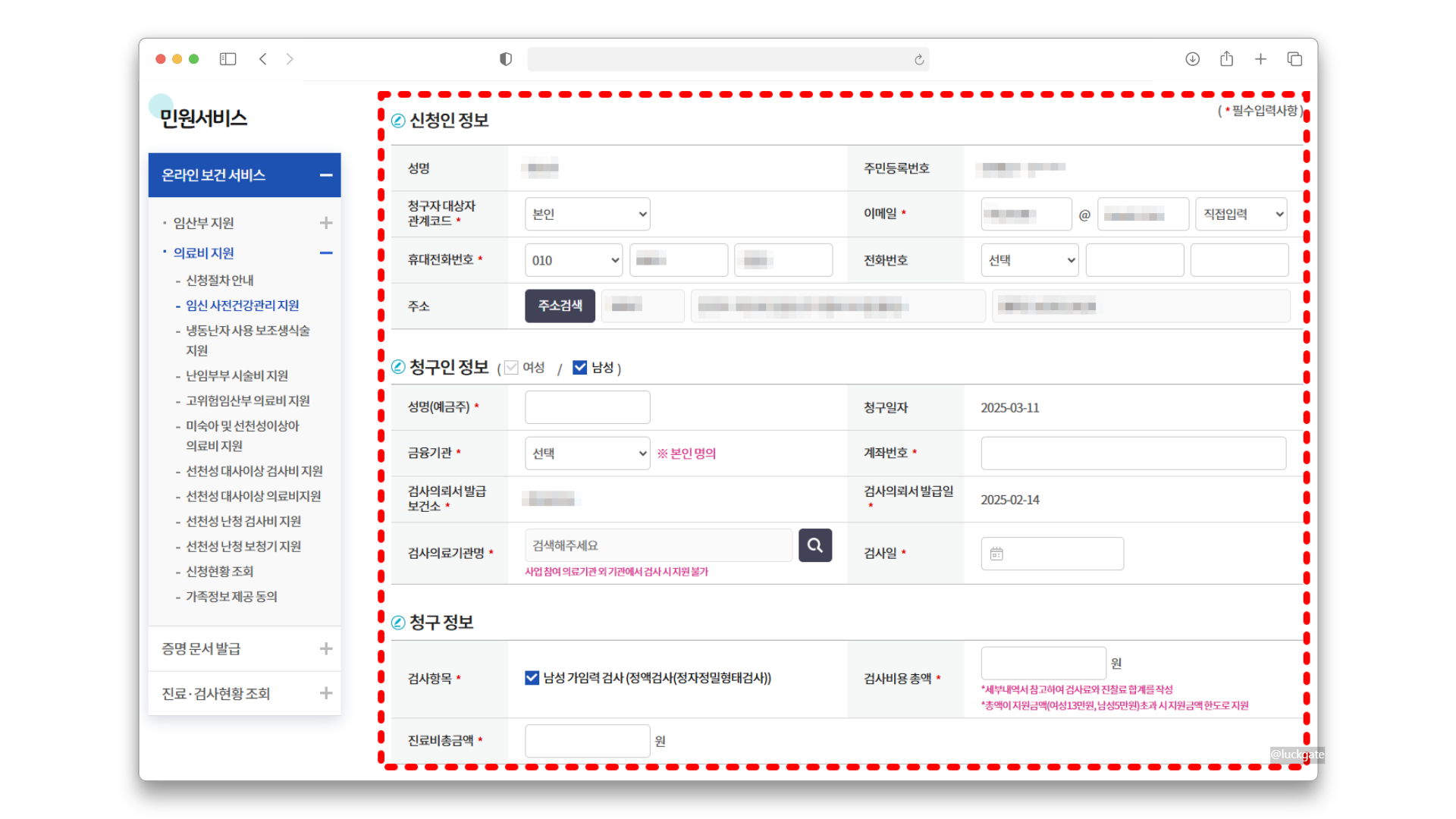 검사를 받은 후엔 1개월 이내에 청구해야 해요. 청구 시 필요한 서류는 청구서, 진료비 영수증, 진료비 세부내역서, 통장사본 등이에요. 이것들을 준비해서 보건소에 제출하거나 온라인으로 청구하면 돼요. 심사 후 적합하다고 판단되면 신청자 계좌로 지원금이 입금돼요. 보통 청구 후 한 달 이내에 받을 수 있답니다.