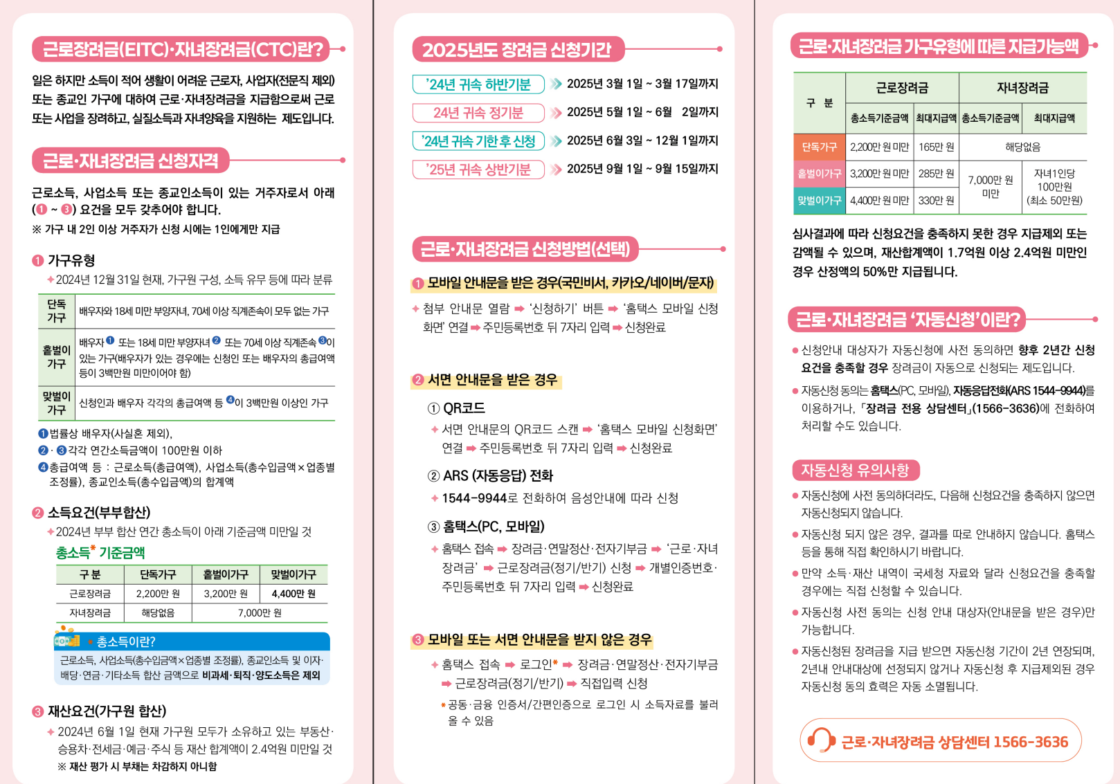 2024년 12월 31일 기준, 근로·사업·종교인 소득이 있는 거주자여야 해요. 가구 형태는 세 가지로 구분돼요.