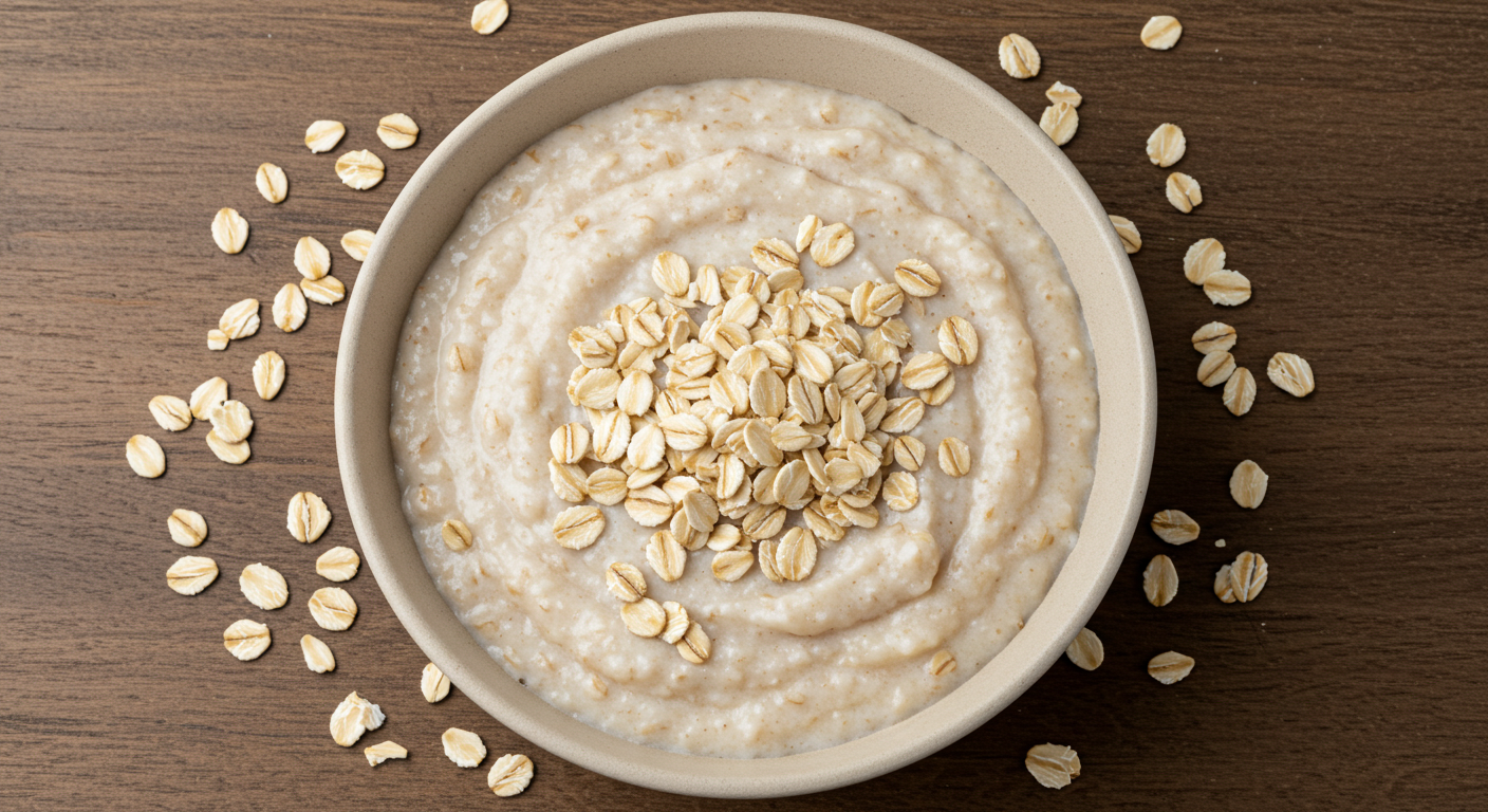 오트밀은 부드럽고 소화가 잘되는 음식이에요. 또한 식이섬유가 많아 장 건강에 긍정적인 효과를 줄 수 있습니다.