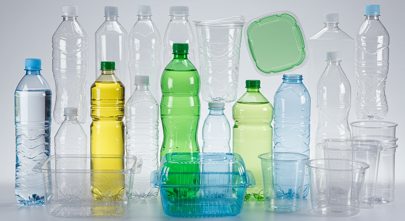 페트 (PET/PETE): 생수병, 탄산음료병, 투명 과일 포장 용기, 식용유 병, 투명 샐러드 용기, 투명 화장품 용기 (토너 등), 간장병 (일부), 테이크아웃 투명 컵.