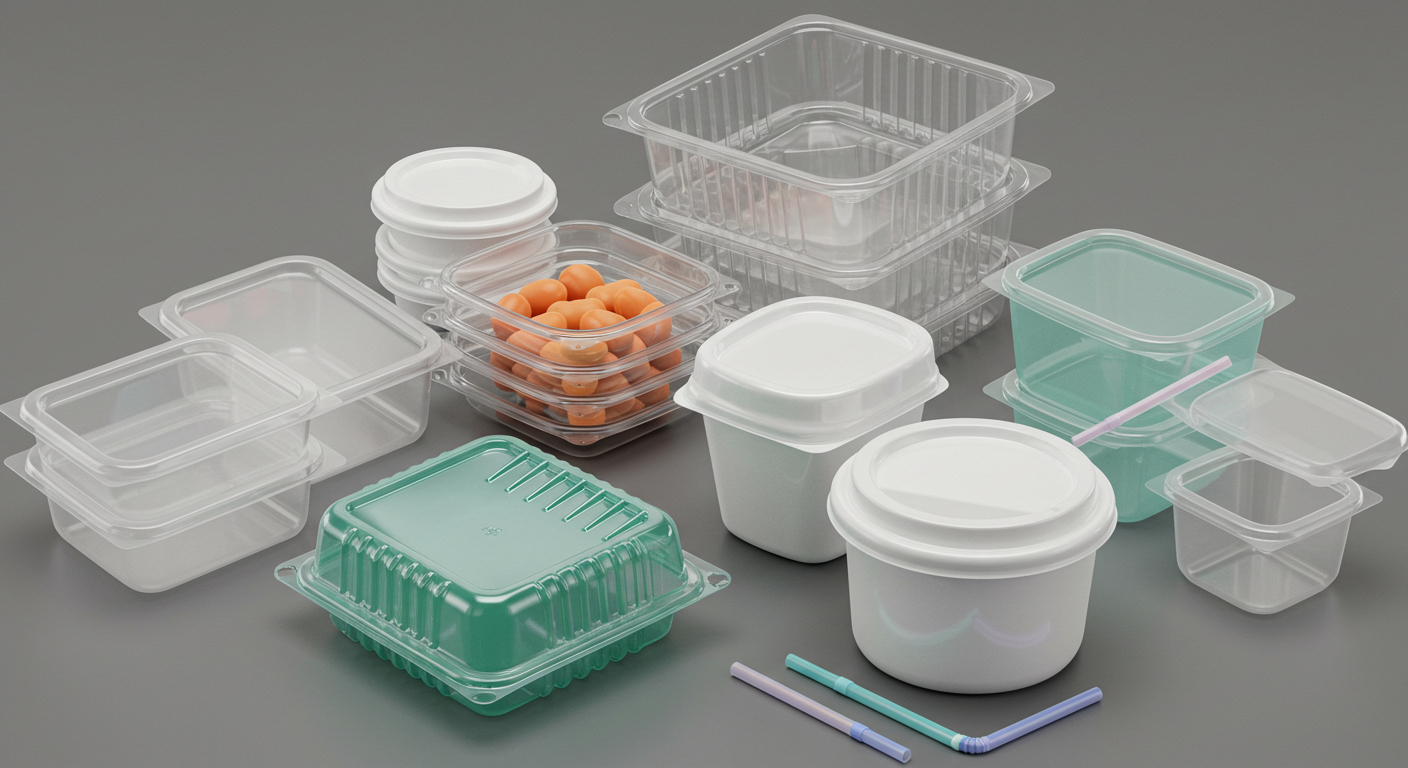 폴리스티렌 (PS): 떠먹는 요구르트 용기, 일회용 컵라면 용기, 스티로폼 (과일/생선 받침, 완충재), 플라스틱 계란판 (투명/색상), 일회용 플라스틱 숟가락/포크/접시, 테이크아웃 음료 컵 (일부), CD 케이스.