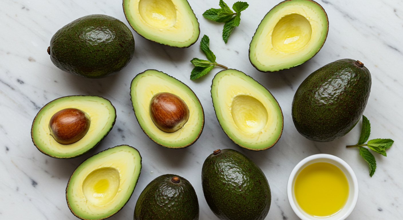 아보카도는 건강한 지방인 단일불포화지방산과 비타민 E를 함유하고 있어요. 이 성분들은 혈액 순환을 원활하게 하고 피부 탄력을 유지하는 데 기여해요.