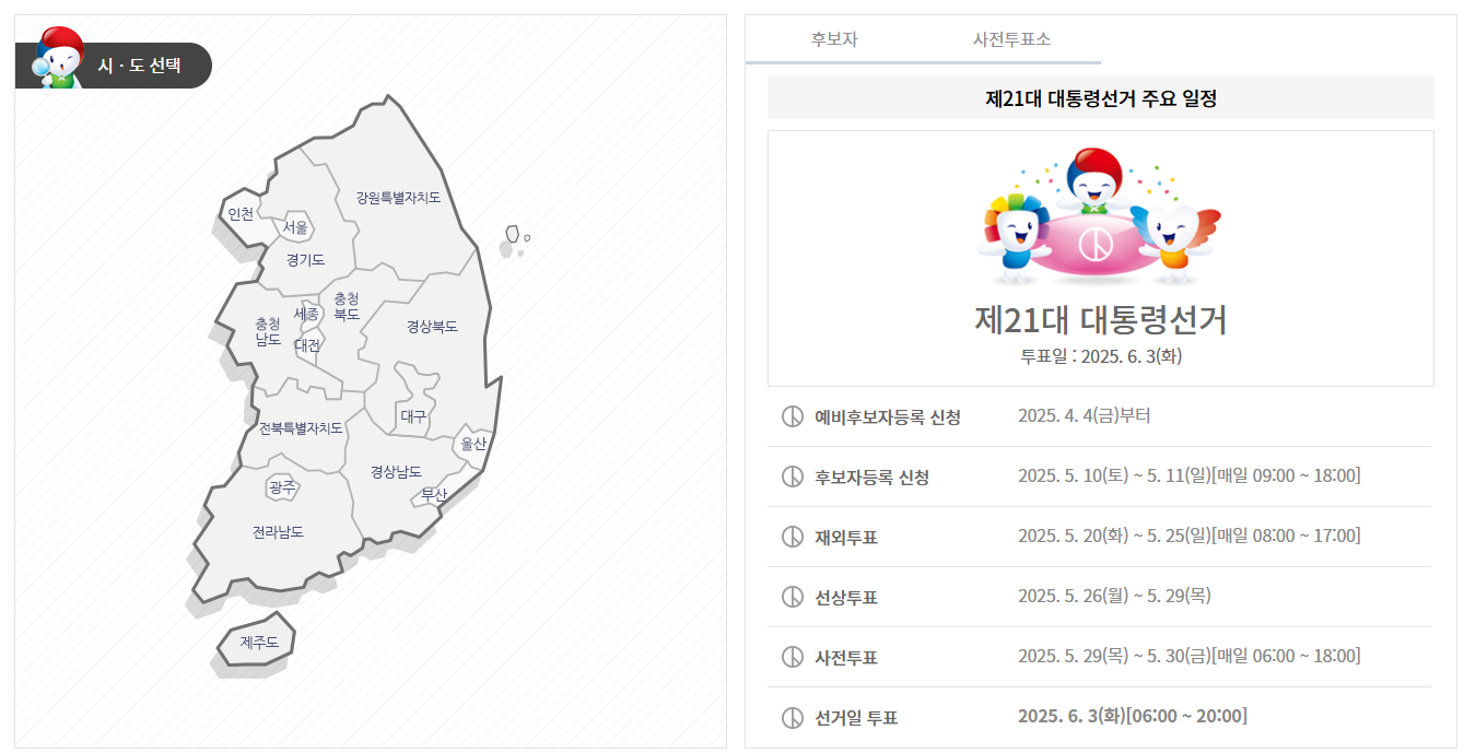 • 선거일 투표: 2025. 6. 3(화) [06:00 ~ 20:00]
