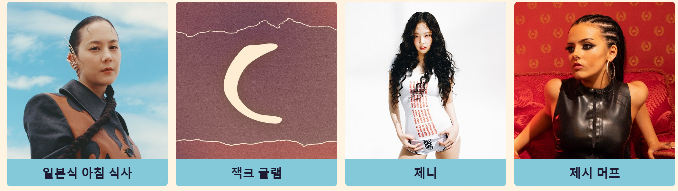 - 일요일: 파워 래퍼 Megan Thee Stallion, EDM 킹 Zedd, 블랙핑크 JENNIE (제니) 솔로!, 전자음악 거장 Kraftwerk 등등!