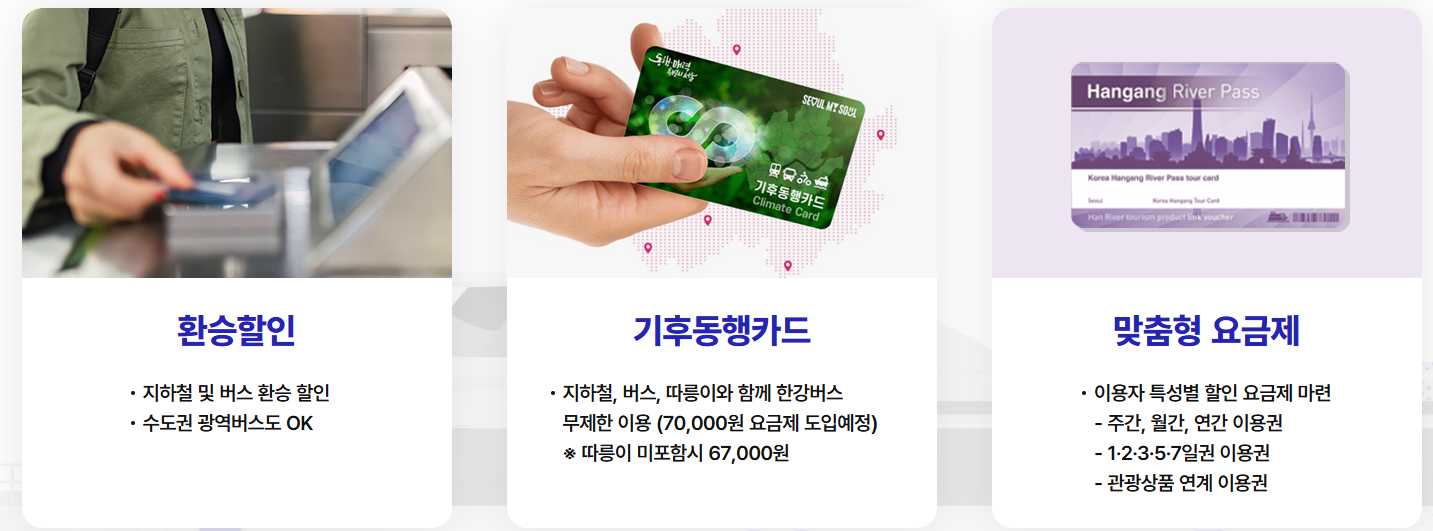 - 기후동행카드: 지하철, 버스, 따릉이까지 무제한 이용 (70,000원)
