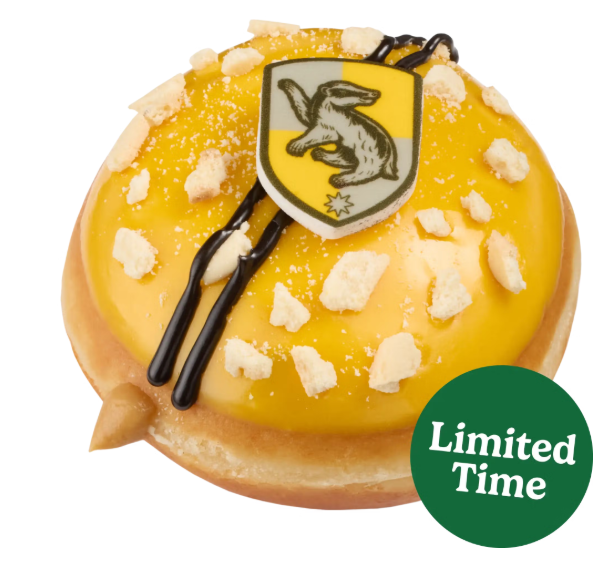 - 골든 스니치 도넛: 노란 레몬 글레이즈에 날개 모양 초콜릿이 더해져 퀴디치 상징 아이템을 형상화했어요.