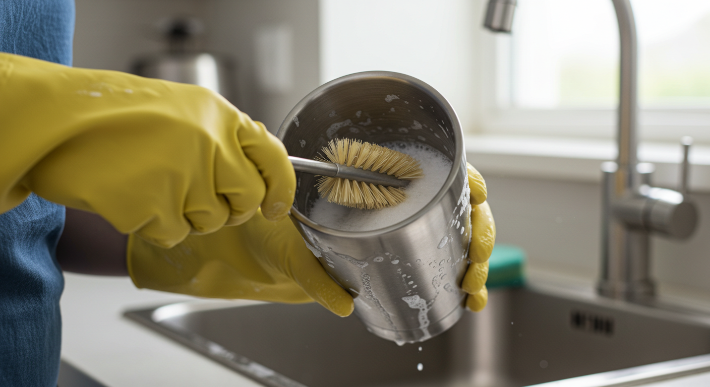 - 방법: 텀블러에 레몬즙과 물을 섞어 부은 후 10분 정도 두세요. 이후 청소 솔로 가볍게 닦아주면 됩니다. 레몬즙은 냄새도 제거해주는 훌륭한 천연 세제입니다.