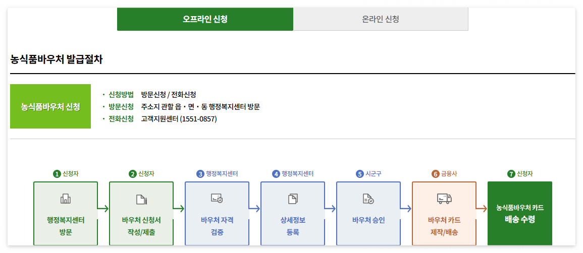 - 온라인신청: 농식품 바우처 홈페이지에서 신청