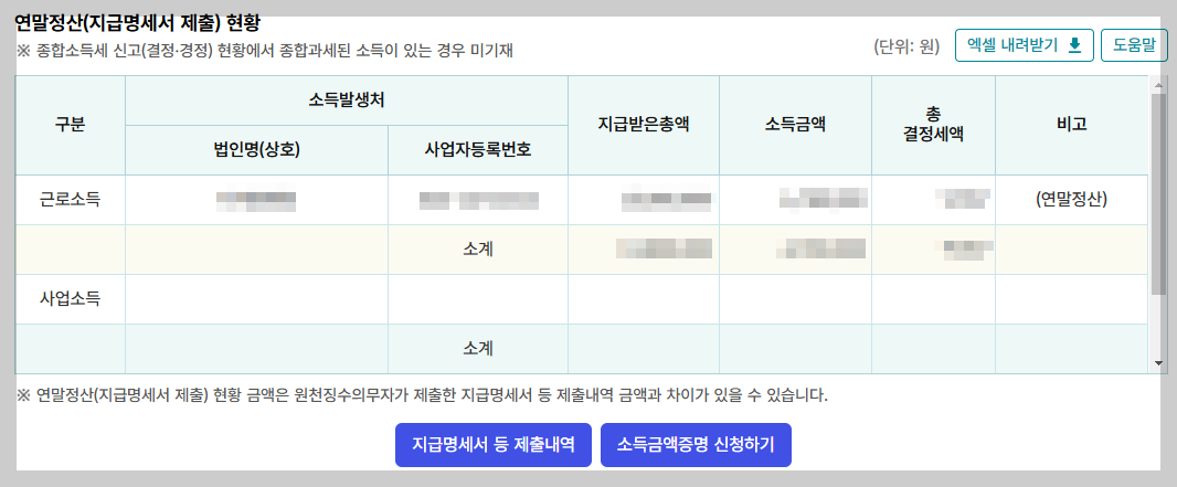 - '지급명세서 조회' 클릭