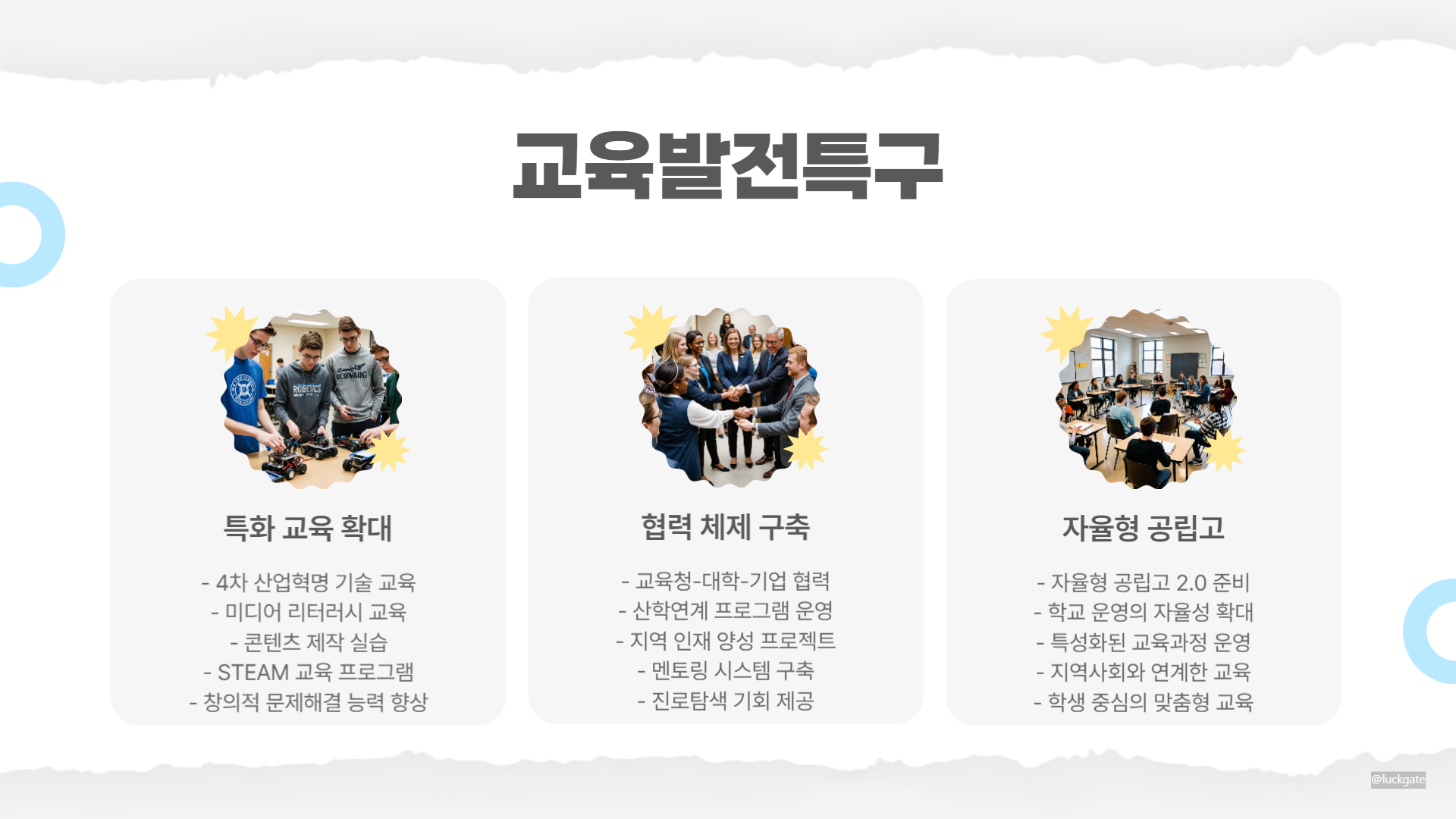 - 협력 체제 구축: 교육청, 대학, 기업과의 협력으로 지역 인재 양성