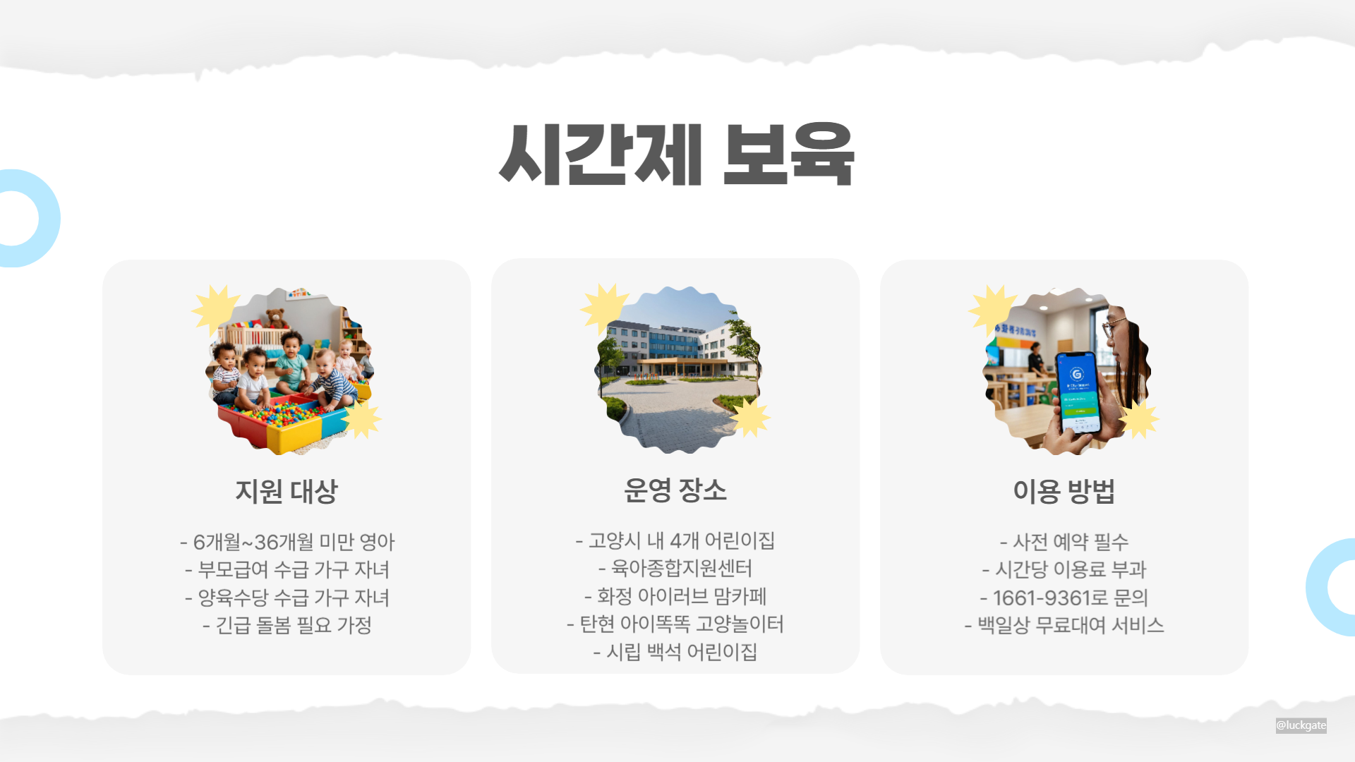 문의 전화: 1661-9361 (시간제보육 대표전호)