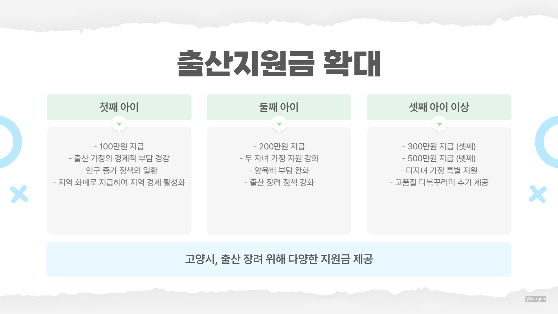 다복꾸러미 : 셋째 자녀 이상 가정에는 고품질 다복꾸러미가 추가로 전달 됩니다.