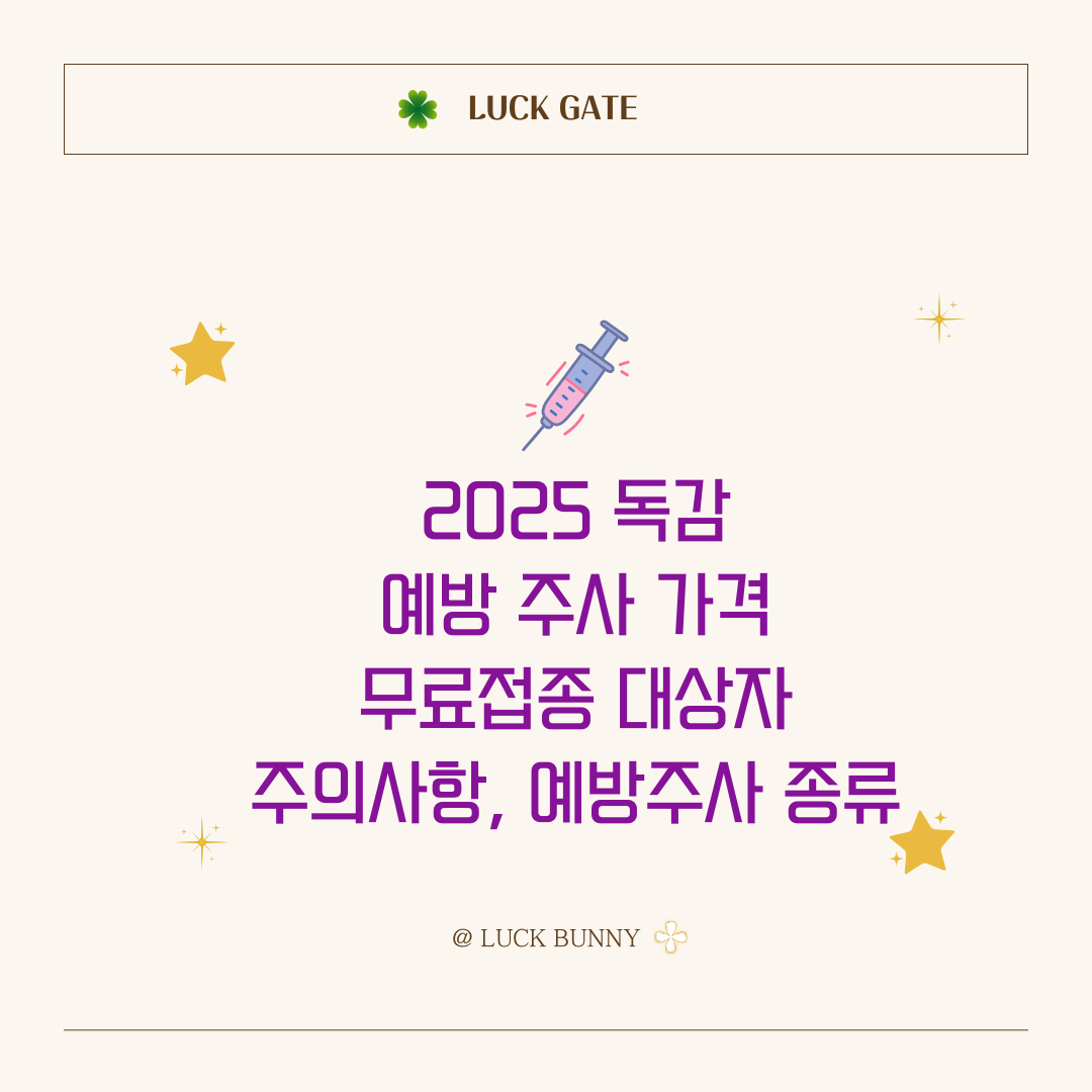코로나가 끝난지 얼마 안된시점에서 독감이 또 유행하고 있죠? 독감 예방 주사는 합병증을 예방하고, 건강한 겨울을 보내기 위한 가장 효과적인 방법입니다. 2025년 독감 예방 주사의 가격, 무료접종 대상자, 주의사항, 그리고 예방 주사 종류에 대해 자세히 설명드리겠습니다.