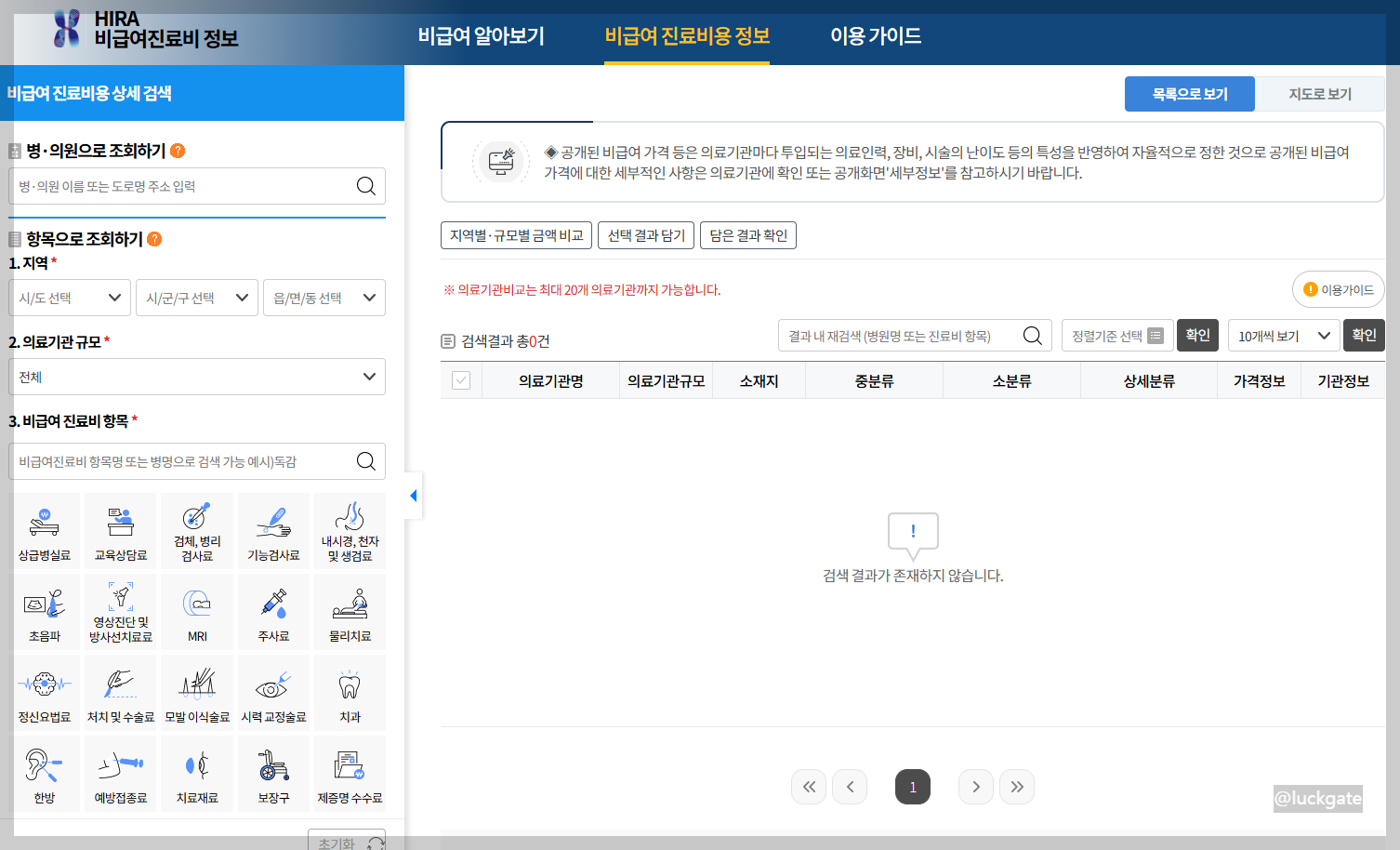 - 이동경로: 의료정보 → 비급여진료비정보 → 비급여 진료비 정보